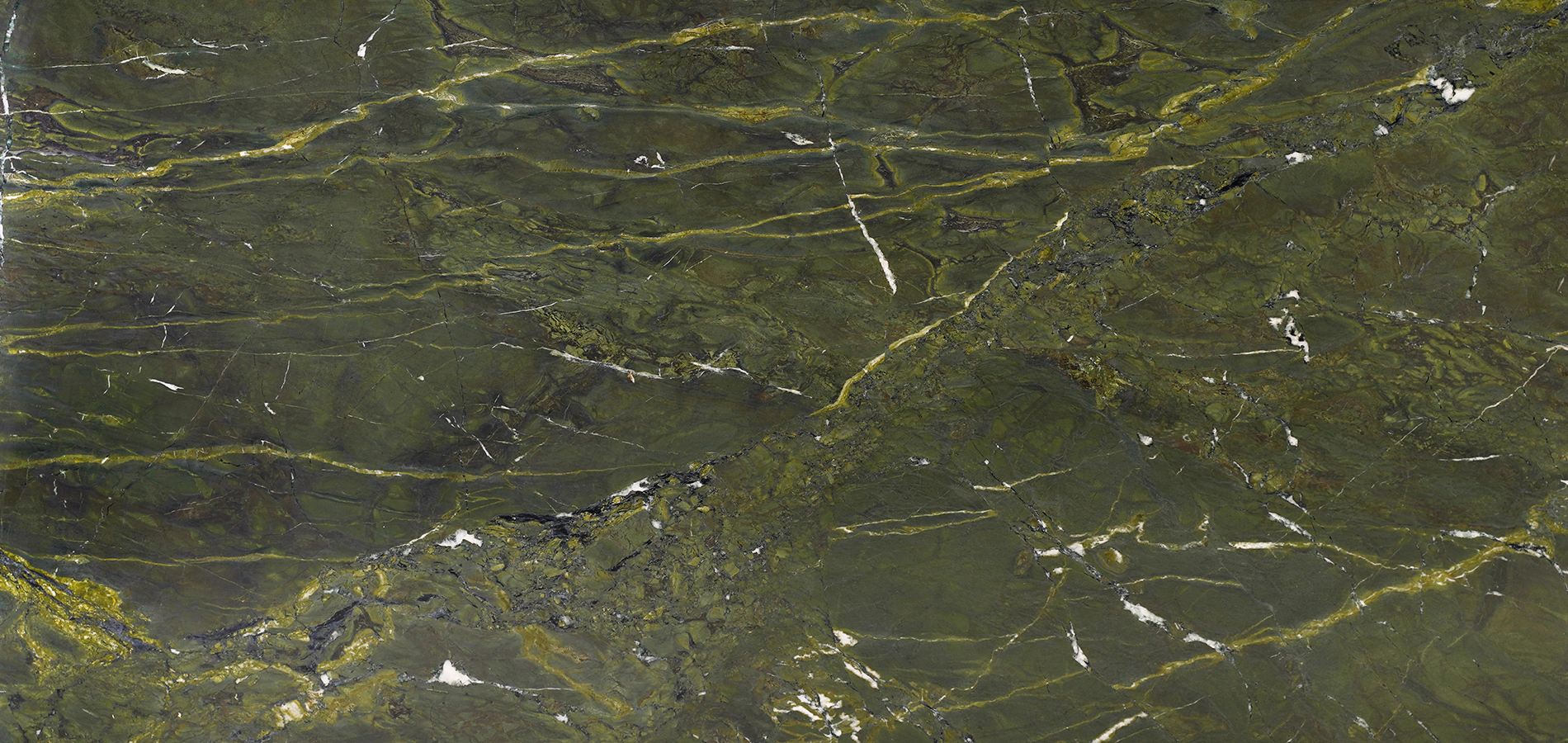 Verde Fantastico is a polished Iranian granite defined by its deep green base and intricate patterns of lighter green, white, and golden veins. The surface reveals a bold natural composition, enhanced by the polished finish to bring out its full visual richness. Its expressive texture and durability make it ideal for refined architectural applications.