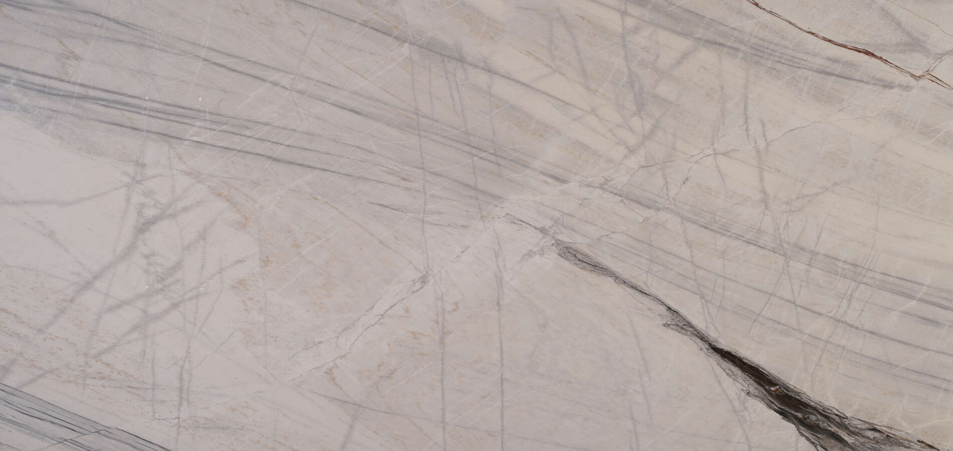 Simon is a polished Iranian marble distinguished by its soft beige base and intricate veining in tones of gray, charcoal, and subtle rust. The irregular, crisscrossing veins give it a dynamic, organic texture that feels both natural and sophisticated. Its polished surface enhances the depth and contrast of the stone, making it a versatile choice for upscale interiors.