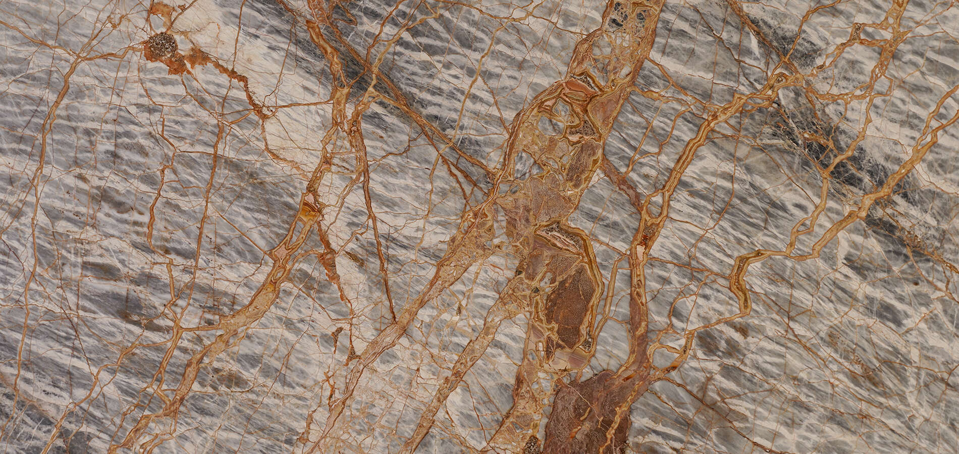 Toranj is a polished Iranian marble known for its striking interplay of warm beige, deep brown, and soft gray tones. Its surface features bold, branching veins that create a dynamic, almost calligraphic pattern—evoking the elegance of Persian design motifs. The polished finish enhances the contrast and depth of the stone, making it a statement piece in any refined setting.